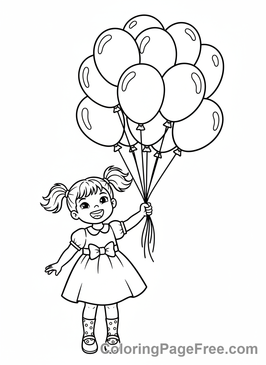 Balloons coloring page – Girl holds Balloons