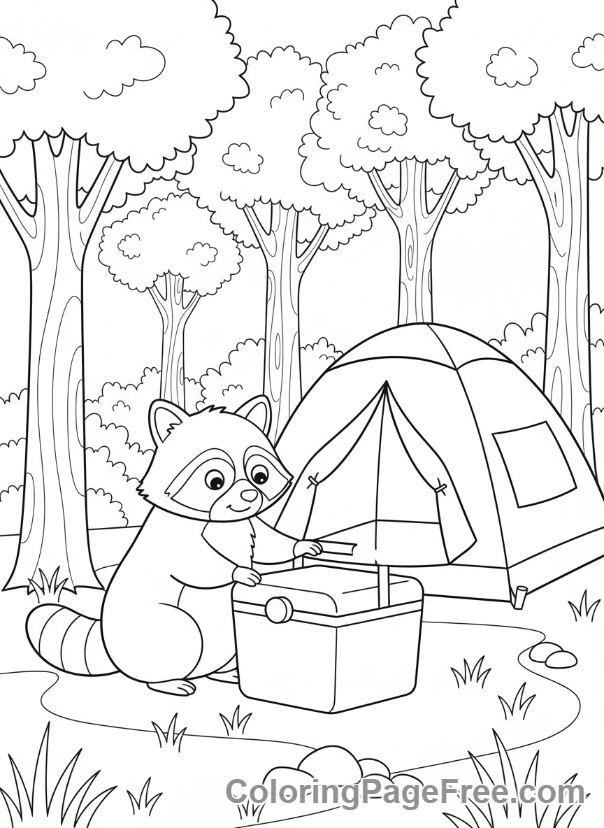 Download pack of 10 pcs. “Camping Raccoon Coloring Pages”