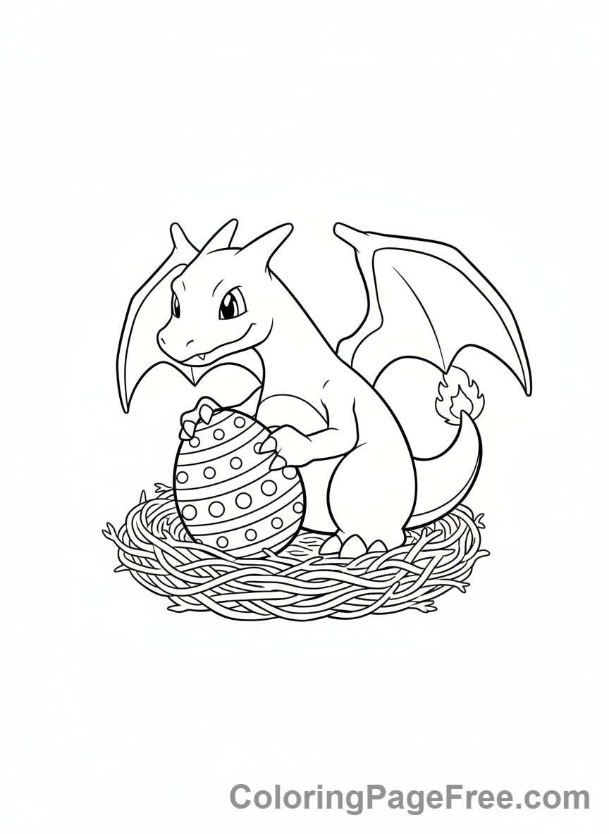 Download pack of 10 pcs. “Charizard Guarding Coloring Pages”