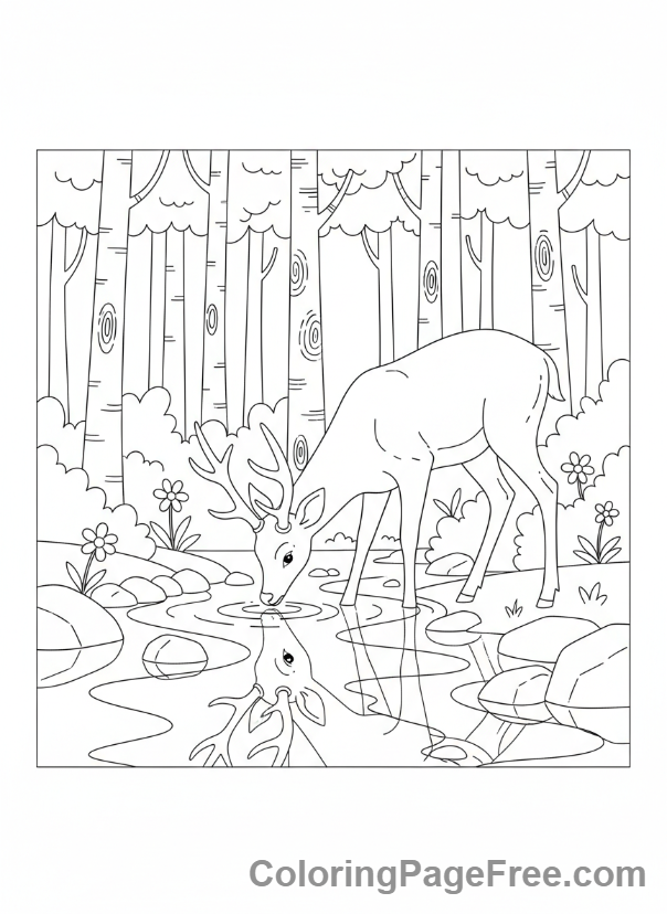 Deer coloring page – Deer drinking stream