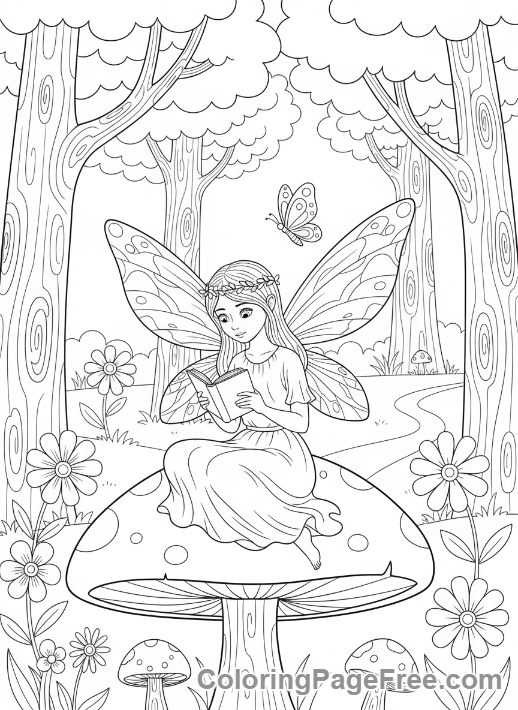 Fairy coloring page – Fairy reading book