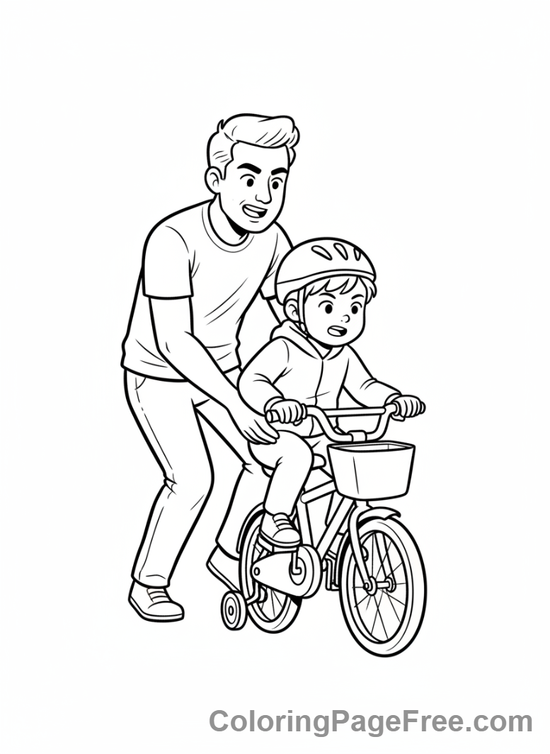 Fathers Day coloring page – Dad teaches bike