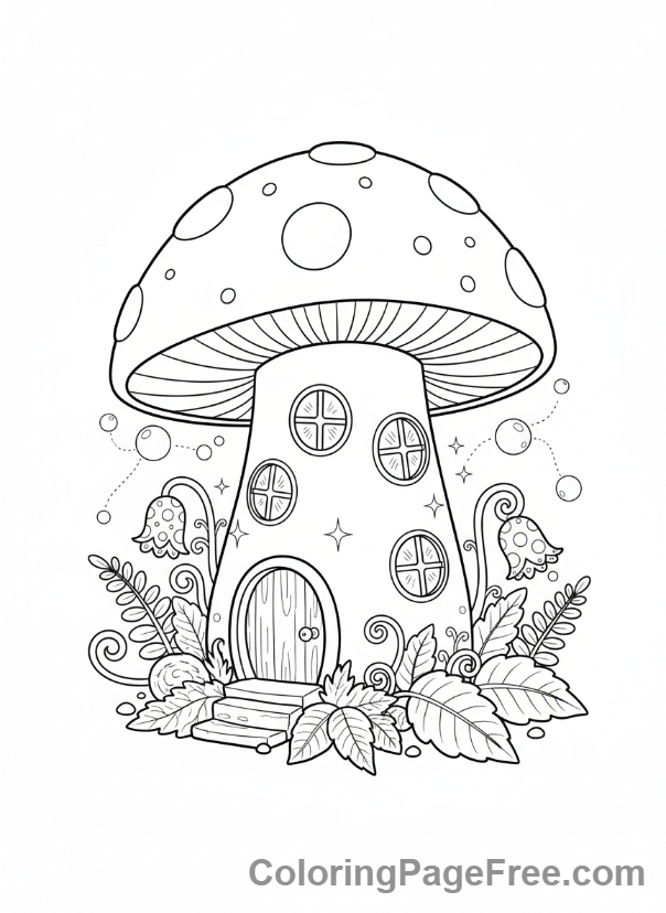 Free printable coloring page: Forest Coloring Page Mushroom Fairy House. Perfect for kids.