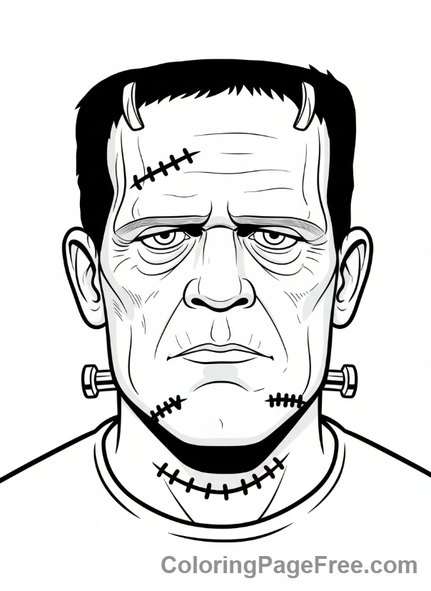 Halloween Scary coloring page – Frankenstein monster portrait