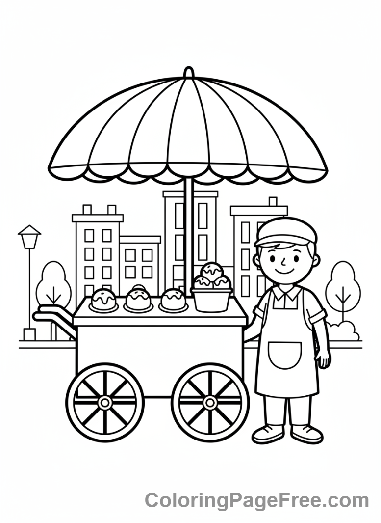 Ice Cream coloring page – Ice cream cart umbrella