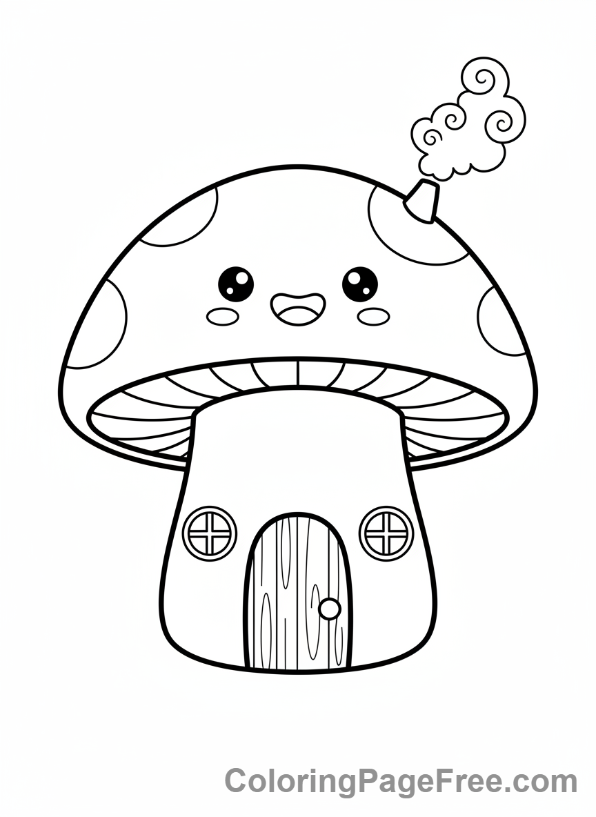 Kawaii coloring page – Kawaii mushroom house