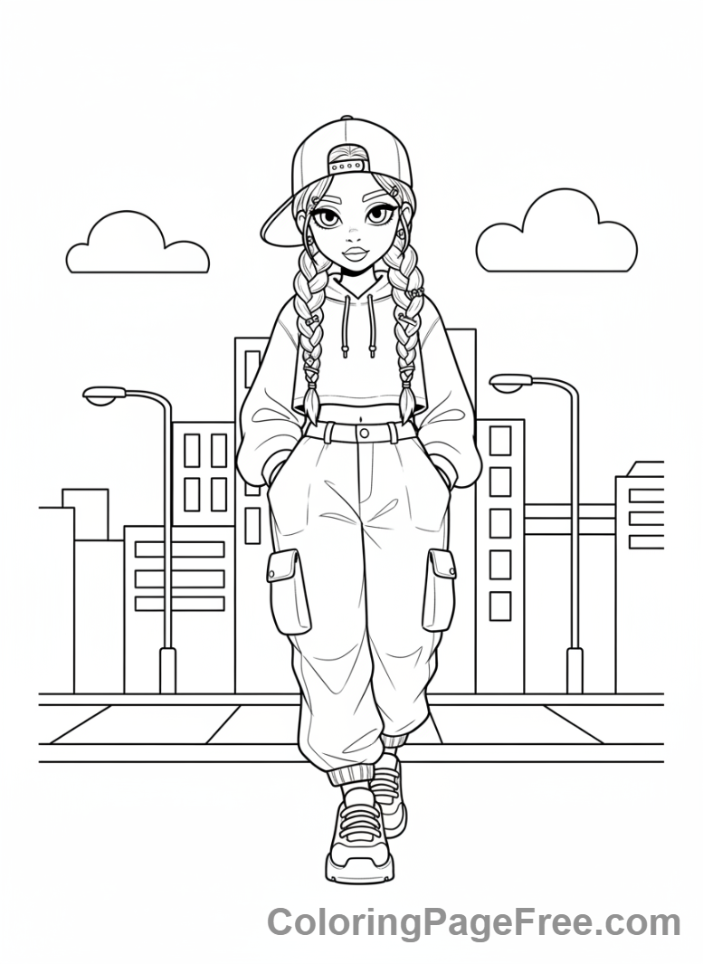 Free printable coloring page: Kpop Girl Coloring Page Kpop Girl Walking. Perfect for kids.