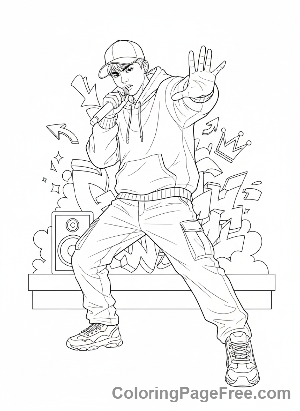 Kpop Idols coloring page – Idol rapping with energy