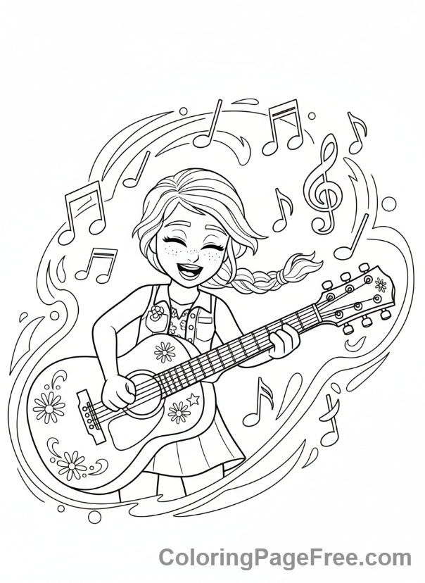 Free printable coloring page: Lego Friends Coloring Page Paisley Playing Guitar. Perfect for kids.