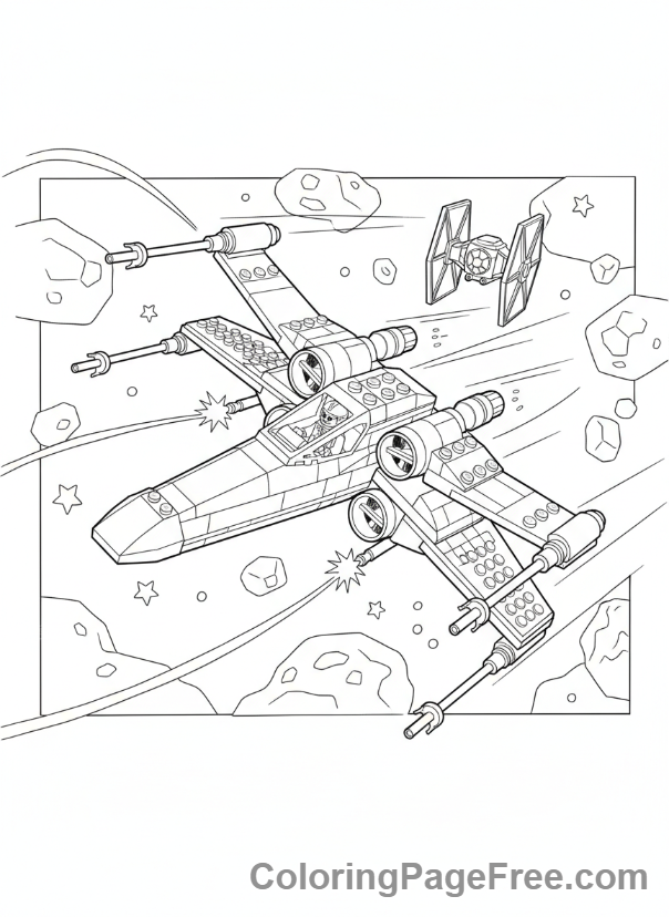 Lego Star Wars coloring page – Lego X-Wing space battle