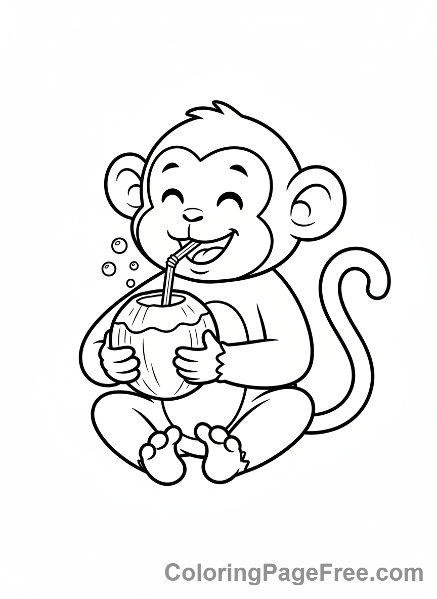 Monkey coloring page – Monkey drinking coconut