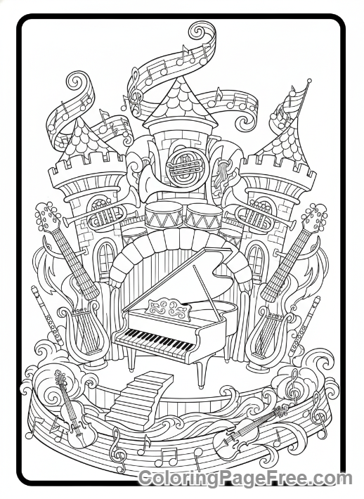 Download pack of 10 pcs. “Music Castle Coloring Pages”
