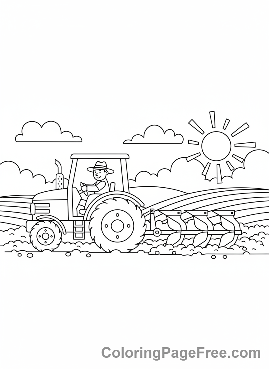 Download pack of 10 pcs. “Tractor Plowing Coloring Pages”