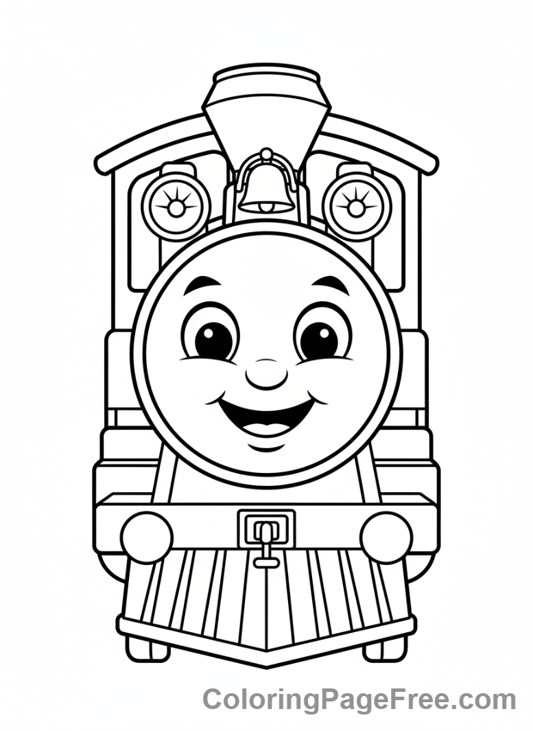 Free printable coloring page: Train Coloring Page Friendly Train Front. Perfect for kids.