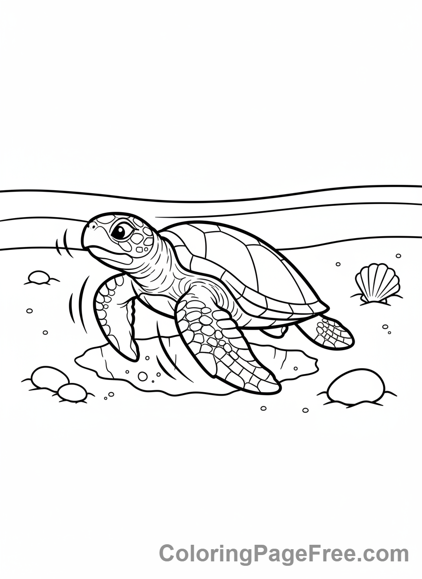 Turtle coloring page – Turtle digging sand